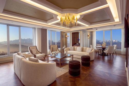 Sheraton Bishkek se nachází v destinaci Biškek a nabízí kola zdarma, sezónní venkovní bazén, terasu a bar. Všechny ubytovací jednotky v tomto hotelu s 5 hvězdičkami mají výhled na město a na místě je k dispozici sauna a wellness centrum. Ubytování poskytuje nepřetržitě otevřenou recepci, dopravu na letiště, pokojovou službu a bezplatné Wi-Fi ve všech prostorách.