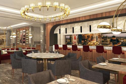 V ubytování Sheraton Bishkek si můžete pochutnat na snídani formou bufetu. Sheraton Bishkek provozuje restauraci s nabídkou pizzy, nabídkou steaků a nabídkou sushi. Objednat si zde můžete i halal pokrmy.