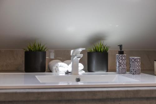 The apartment provides guests with a terrace, city views, a seating area, cable flat-screen TV, a fully equipped kitchen with a dishwasher and an oven, and a private bathroom with shower and a hair dryer. A fridge, a stovetop and kitchenware are also available, as well as a coffee machine and a kettle. At the apartment complex, every unit is equipped with bed linen and towels.