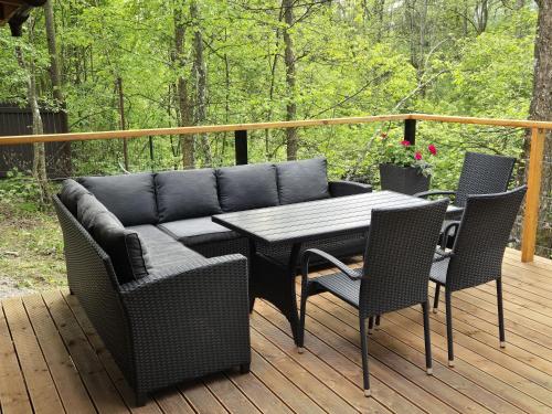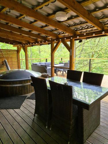 Prázdninový dům má 2 ložnice, 1 koupelnu, ložní prádlo, ručníky, TV s plochou obrazovkou se satelitními programy, kuchyň s kompletním vybavením a terasu s výhledem na řeku. Koupelna je vybavená sprchou, vířivkou a fénem.
