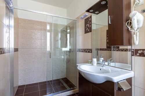 Set in Hévíz, 550 metres from the entrance of the thermal lake, Villa Lucia features a terrace and views of the city. The Rákóczi Promenade is 15 metres from the property.