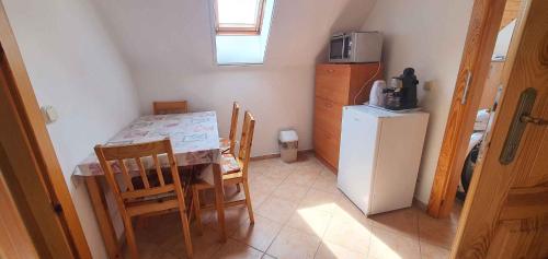 V kuchyni je k dispozici lednice, mikrovlnná trouba, varná deska a kávovar.