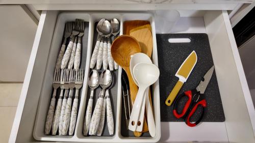 Tento apartmán s klimatizací má 1 ložnici, TV s plochou obrazovkou a kuchyň s lednicí a mikrovlnnou troubou.