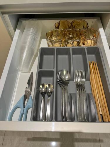 SOGO PWTC KLCC Monorail link Quill Mall 7Pax má 2 ložnice s klimatizací, jídelní část a kuchyň s kompletním vybavením včetně lednice.