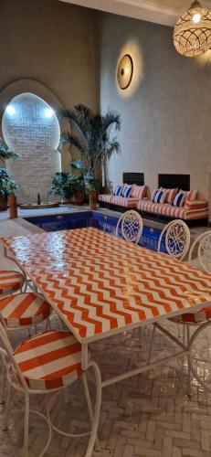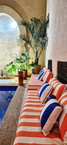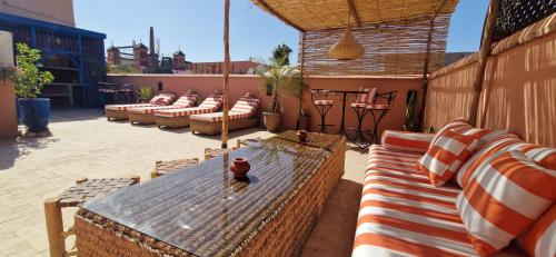 Riad Babmoon - Private Riad with Pool & Rooftop se nachází na ideálním místě v centru města Marakéš a nabízí pokoje s klimatizací, venkovní bazén, bezplatné Wi-Fi a terasu. Zhruba 1 km od ubytování se nachází Mešita Kutubíja, 1,1 km daleko je Orientalistické muzeum v Marrakéši a 1 km Musée de Mouassine. Na místě vám mohou zařídit dopravu na letiště.