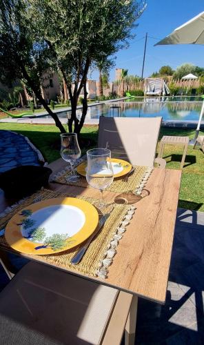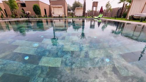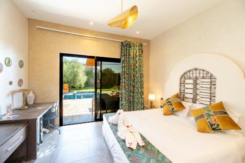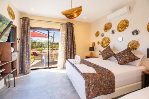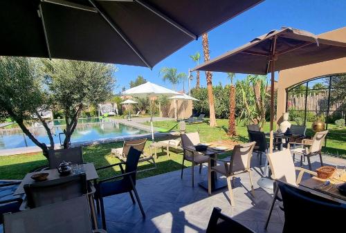 Stylish hôtel se nachází v Marrákéši a nabízí ubytování s zahradou, neplaceným soukromým parkovištěm a terasou. Palác Bahia je 15 km daleko. Ubytování nabízí pokojovou službu, restauraci a venkovní bazén. Na místě vám mohou zařídit dopravu na letiště.