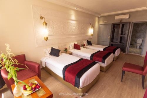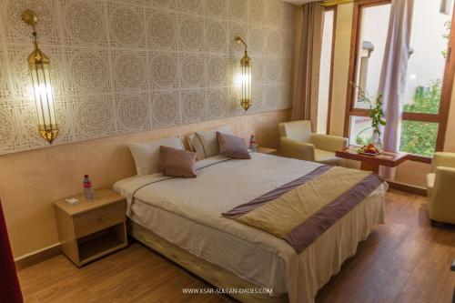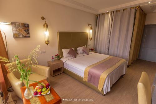 V ubytování Ksar Sultan Dades mají všechny pokoje psací stůl, ložní prádlo a patio s výhledem na hory. Vlastní koupelna je vybavená sprchou, bezplatnými toaletními potřebami a fénem. Všechny pokoje mají šatní skříň a varnou konvici.