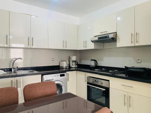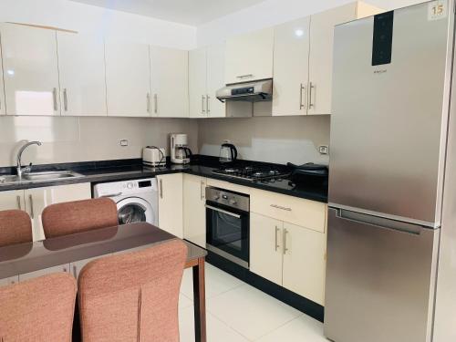 Tento apartmán s klimatizací má 2 ložnice, satelitní TV s plochou obrazovkou, jídelní část, kuchyň s lednicí a obývací prostor. V tomto apartmánu jsou k dispozici ručníky a ložní prádlo.