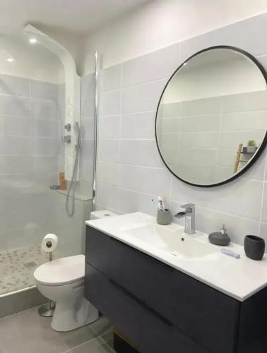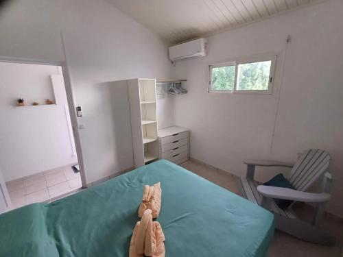Appartement charmant avec vue sur mer à Schoelcher - 90 m², calme má 1 ložnici, koupelnu s fénem, obývací prostor a kuchyň s lednicí.