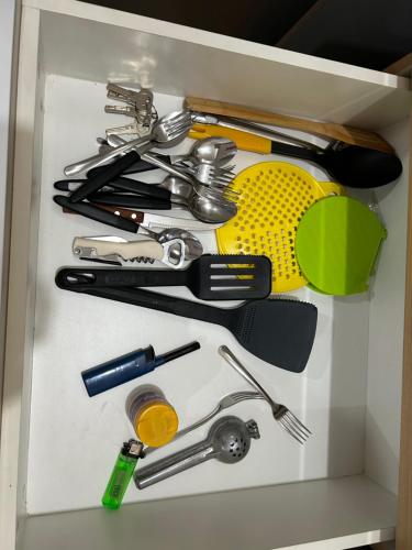 Tento apartmán s klimatizací má 1 ložnici, TV s plochou obrazovkou a kuchyň s lednicí a troubou.