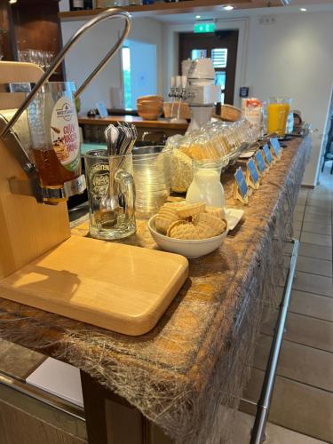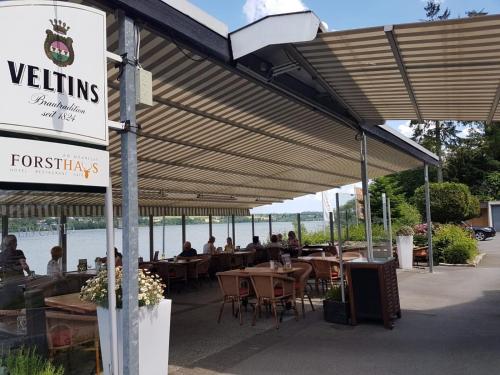 Každé ráno se ve slunné jídelně podává vydatná snídaně formou bufetu. Forsthaus podává tradiční německé speciality a domácí koláče. am Möhnesee restaurace ve venkovském stylu.