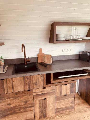 Tento prázdninový dům má 1 ložnici, obývací prostor, kuchyňský kout s kompletním vybavením včetně lednice a minibaru a 1 koupelnu. Koupelna je vybavená sprchou a vířivkou.