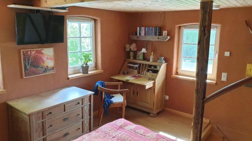 Ferienhaus-Alter-Backes-denkmalgeschuetztes-Fachwerkhaus má 1 ložnici, kuchyň s lednicí a troubou, pračku a koupelnu s bezplatnými toaletními potřebami a fénem. V tomto prázdninovém domě jsou k dispozici ručníky a ložní prádlo.