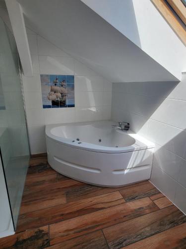 Ferienhaus Siegstrand nabízí 4 ložnice, 3 koupelny, kuchyň s dobrým vybavením, TV s plochou obrazovkou a vířivku. Prázdninový dům má také koupelnu.