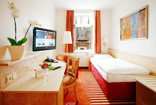 This traditional 4-star hotel, dating from 1717, features underground parking, family rooms and a sauna that can be used free of charge. It lies directly on Wernigerode’s historic market square, opposite the town hall.