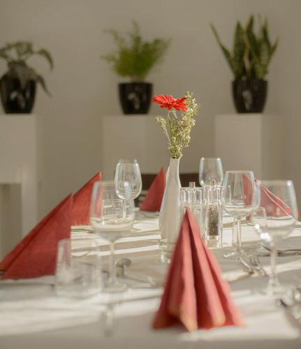 Breakfast consisting of many homemade products can be enjoyed on Hotel Am Tiefwarensee's delightful garden terrace. Guests can also enjoy homemade cakes and pies in the hotel cafe or else modern and creative cuisine made from regional ingredients in the evening.