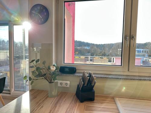 D2 Luxus-Penthouse mit Dachterrasse - Bis 9 Personen - A81 - Stuttgart - Messe - Daimler - ab 5 Nächte - Business Center und Konferenzraum separat buchbar se může pochlubit výhledem do zahrady a nabízí ubytování s sdíleným loungem a balkonem. Výstaviště Sindelfingen se nachází přibližně 7,1 km odtud. Tento apartmán poskytuje neplacené soukromé parkoviště, sdílenou kuchyň a bezplatné Wi-Fi.