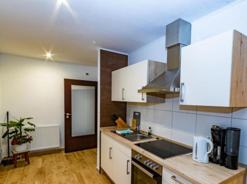 Některé ubytovací jednotky mají také kuchyňský kout s lednicí.
