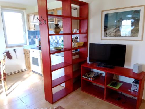 Tento apartmán má 1 ložnici, obývací prostor s TV s plochou obrazovkou se satelitními programy, kuchyňský kout s kompletním vybavením včetně lednice a trouby a koupelnu s fénem.
