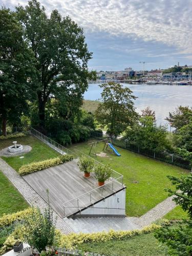 V ubytování Traumwohnung mit Stadthafen-Panorama! Zwei Schlafzimmer, Parkplatz je k dispozici také dětské hřiště.