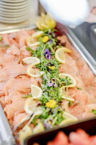 Na místě si můžete pochutnat na snídani formou bufetu, kontinentální snídani nebo vegetariánské snídani. Hotel Aiterbach am Chiemsee provozuje restauraci s jídly německé kuchyně, jídly místní kuchyně a jídly mezinárodní kuchyně. Na požádání jsou k dispozici i vegetariánské, bezlaktózové a veganské pokrmy.