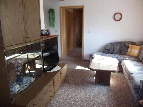 V ubytování Ferienwohnung Erzgebirge - Pobershau - mit schönem Ausblick, ruhige, beste Lage je k dispozici pronájem lyžařského vybavení.