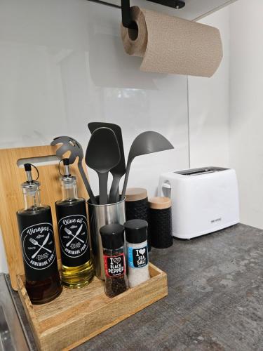 Tento apartmán má 1 ložnici, 1 koupelnu, ložní prádlo, ručníky, TV s plochou obrazovkou, jídelní část a kuchyň s kompletním vybavením. Může se pochlubit také terasou s výhledem do zahrady. Koupelna je vybavená sprchou a fénem.