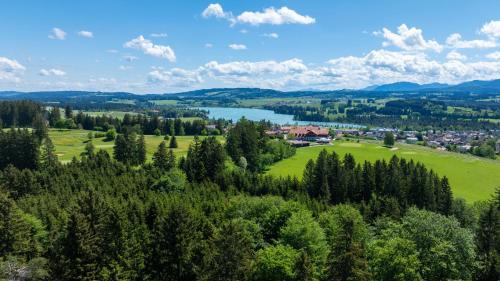 Tento hotel se nachází na kopci s úchvatným výhledem od Horního Bavorska až po Allgäuské Alpy a nabízí wellness centrum s bazénem.