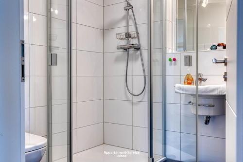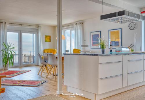 Tento apartmán má 2 ložnice, kuchyň s kompletním vybavením včetně lednice a myčky nádobí a 2 koupelny s sprchou. Tento apartmán nabízí také posezení, pračku a koupelnu s fénem.