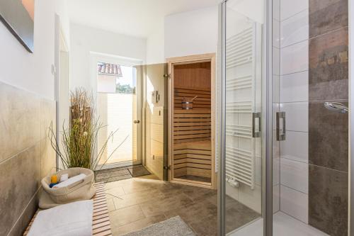 5 Sterne Ferienhaus direkt am See mit Sauna-Kamin-Garten se nachází v destinaci Krakow am See a poskytuje zahradu, terasu, vybavení pro grilování a ubytování s bezplatným Wi-Fi a výhledem na jezero. Tento prázdninový dům nabízí neplacené soukromé parkoviště a v okolí se můžete věnovat pěší turistice, cyklistice a dalším aktivitám.