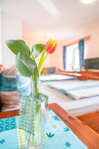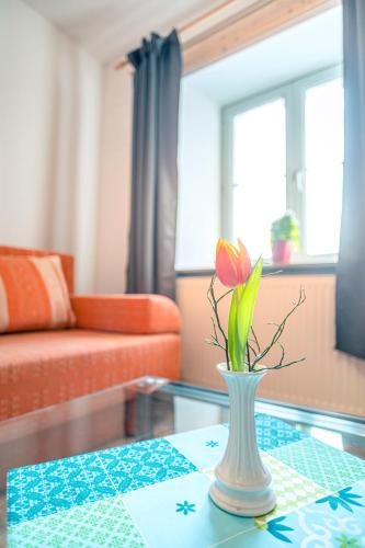 K dispozici je také lednice, varná deska a kávovar.