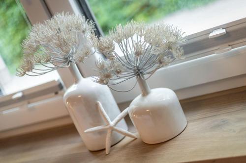 Hyggelige-Kuestenkoje-2-in-Husum má 2 ložnice, kuchyň s lednicí a myčkou nádobí, pračku a koupelnu s fénem. V tomto apartmánu jsou k dispozici ručníky a ložní prádlo.