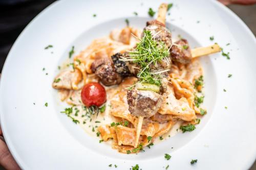 Gasthaus Lammkontor provozuje restauraci s jídly německé kuchyně. Objednat si zde můžete i vegetariánské, bezlaktózové a veganské pokrmy.