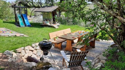 V ubytování Ferienwohnung Schwalbennest je k dispozici zahrada, venkovní gril a dětské hřiště.