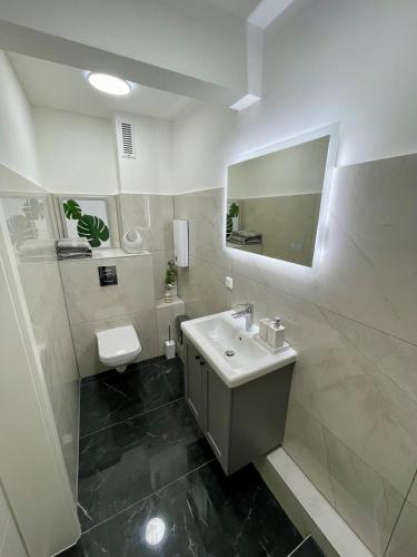 Tento apartmán má 1 ložnici a 1 koupelnu s bezplatnými toaletními potřebami a fénem. Koupelna je vybavená sprchou.