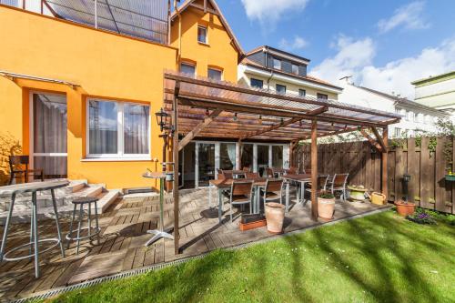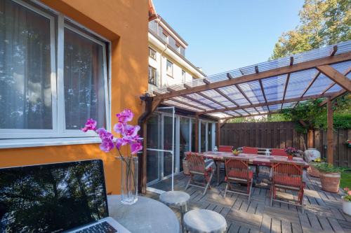 Po dni stráveném prohlídkou města si můžete posedět v malé zahradě s lehátky.