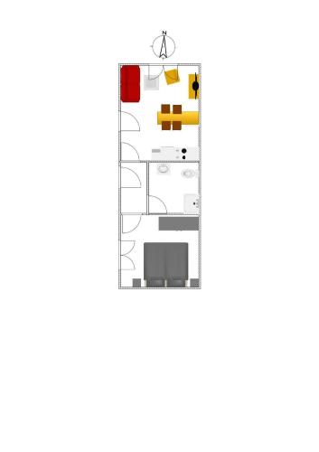Tento apartmán má 1 ložnici, obývací prostor s TV, kuchyň s kompletním vybavením včetně lednice a myčky nádobí a koupelnu s fénem.