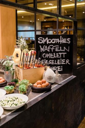 Italian dishes are served in the restaurant, which is fitted with floor-to-ceiling windows that open out on to the terrace. Guests can watch sporting events and enjoy drinks at the hotel's bar.
