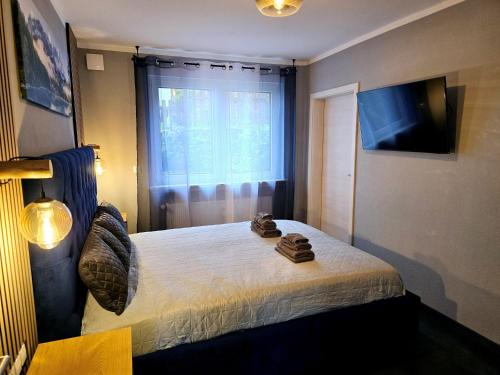 Tento apartmán má 2 ložnice, 1 koupelnu, ložní prádlo, ručníky, TV s plochou obrazovkou se satelitními programy, jídelní část a kuchyň s kompletním vybavením. Může se pochlubit také terasou s výhledem na město. Koupelna je vybavená sprchou a fénem.