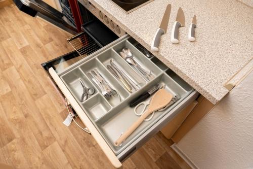 Tento apartmán má 1 ložnici, obývací prostor, kuchyň s kompletním vybavením a 1 koupelnu. Apartmán má také koupelnu.