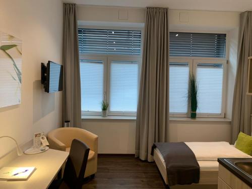 Všechny pokoje jsou vybaveny TV s plochou obrazovkou se satelitními programy, lednicí, kávovarem, sprchou, bezplatnými toaletními potřebami a psacím stolem. Všechny pokoje zahrnují varnou konvici a vlastní koupelnu s fénem a některé pokoje nabízejí kuchyň s myčkou nádobí. Všechny pokoje v ubytování best business bühl - boardinghouse mají v ceně ložní prádlo a ručníky.