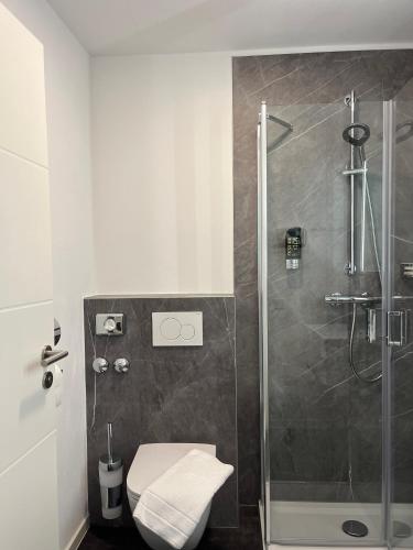 Vlastní koupelna je vybavená sprchou, bezplatnými toaletními potřebami a fénem. Všechny pokoje v ubytování Berghotel Waidmannsheil mají vlastní koupelnu.