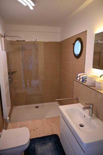 Apartmán má 1 ložnici, 1 koupelnu, ložní prádlo, ručníky, TV s plochou obrazovkou, kuchyňský kout s kompletním vybavením a terasu s výhledem na jezero. Koupelna je vybavená sprchou.