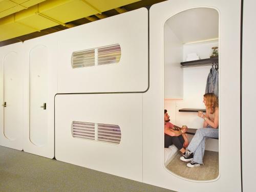 Pomocí mobilní aplikace může host ovládat svůj pokoj a chatovat se CityHosts. Každá soukromá spací kajuta s manželskou postelí King má sdílenou koupelnu s dešťovou sprchou a toaletními potřebami zdarma.