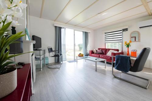 Tato chata má 2 ložnice, 1 koupelnu, ložní prádlo, ručníky, TV s plochou obrazovkou, jídelní část a kuchyň s kompletním vybavením. Může se pochlubit také terasou s výhledem do zahrady. Koupelna je vybavená sprchou a fénem.