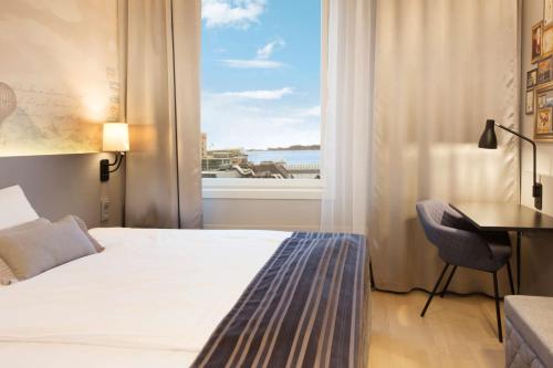 Všechny pokoje v hotelu Scandic Byporten mají dřevěnou podlahu, satelitní TV a minibar.