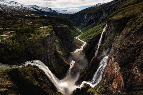 Vøringfoss Hotel má pokoje s vlastní nebo společnou koupelnou. Některé mají malebný výhled na fjord nebo hory.