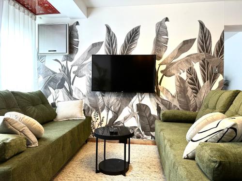 Tento apartmán s klimatizací má 2 ložnice, obývací prostor, kuchyňský kout s kompletním vybavením včetně lednice a myčky nádobí a 1 koupelnu. Koupelna je vybavená bidetem a bezplatnými toaletními potřebami. K dispozici jsou i ručníky a ložní prádlo.