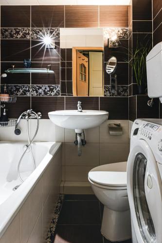 Apartmán má TV s plochou obrazovkou. V kuchyni najdete lednici, troubu a mikrovlnnou troubu a v koupelně je vana, bezplatné toaletní potřeby a fén.
