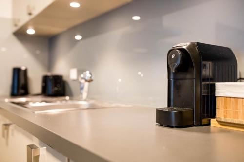 Tento apartmán s klimatizací má 1 ložnici, obývací prostor, kuchyňský kout s kompletním vybavením včetně lednice a myčky nádobí a 1 koupelnu. Koupelna je vybavená vanou a bezplatnými toaletními potřebami. K dispozici jsou i ručníky a ložní prádlo.